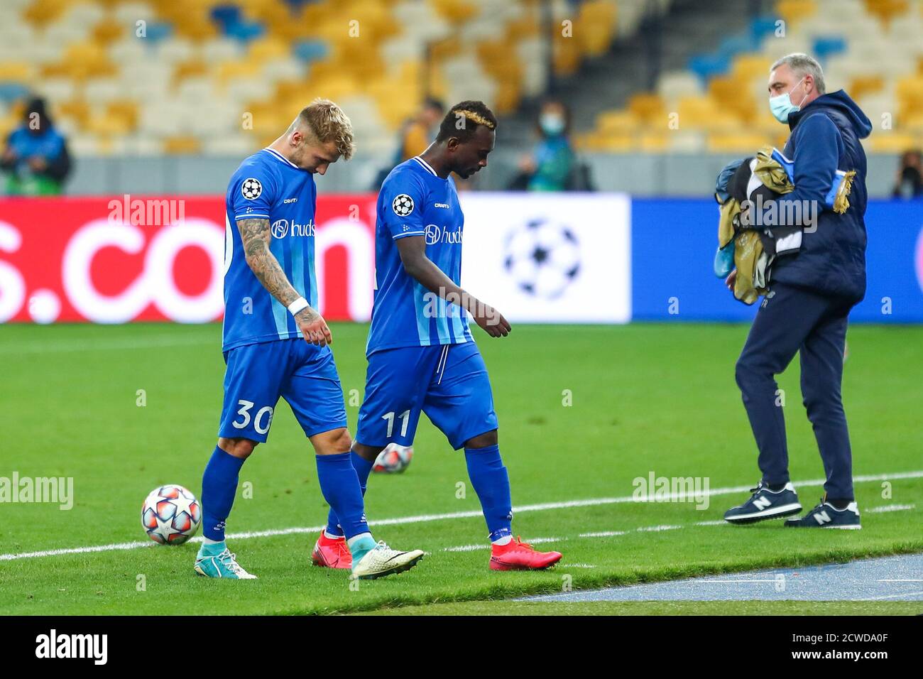 Kyiv Ukraine September 29 Laurent Depoitre Of Aa Gent Tim Kleindienst Of Aa Gent During The Uefa Champions League Play Offs 2nd Leg Match Between Dynamo Kyiv And Kaa Gent At The