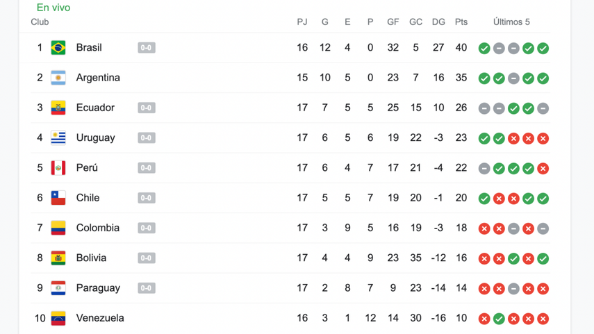 Eliminatorias Conmebol En Vivo Tabla De Posiciones Fecha 13